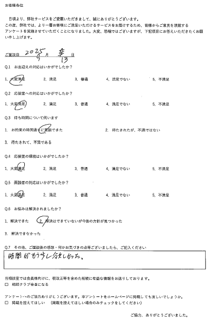 令和7年9月13日 京都市 面談者の対応に大変満足です