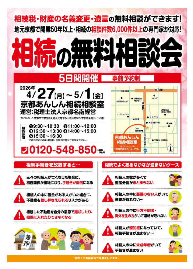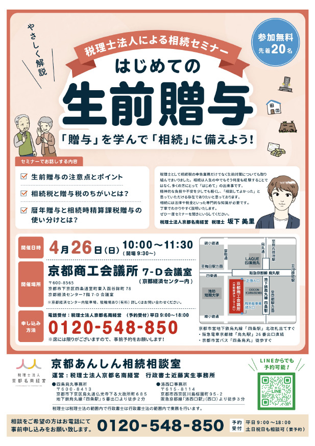 2026年4月26日(日)はじめての生前贈与セミナー@京都商工会議所