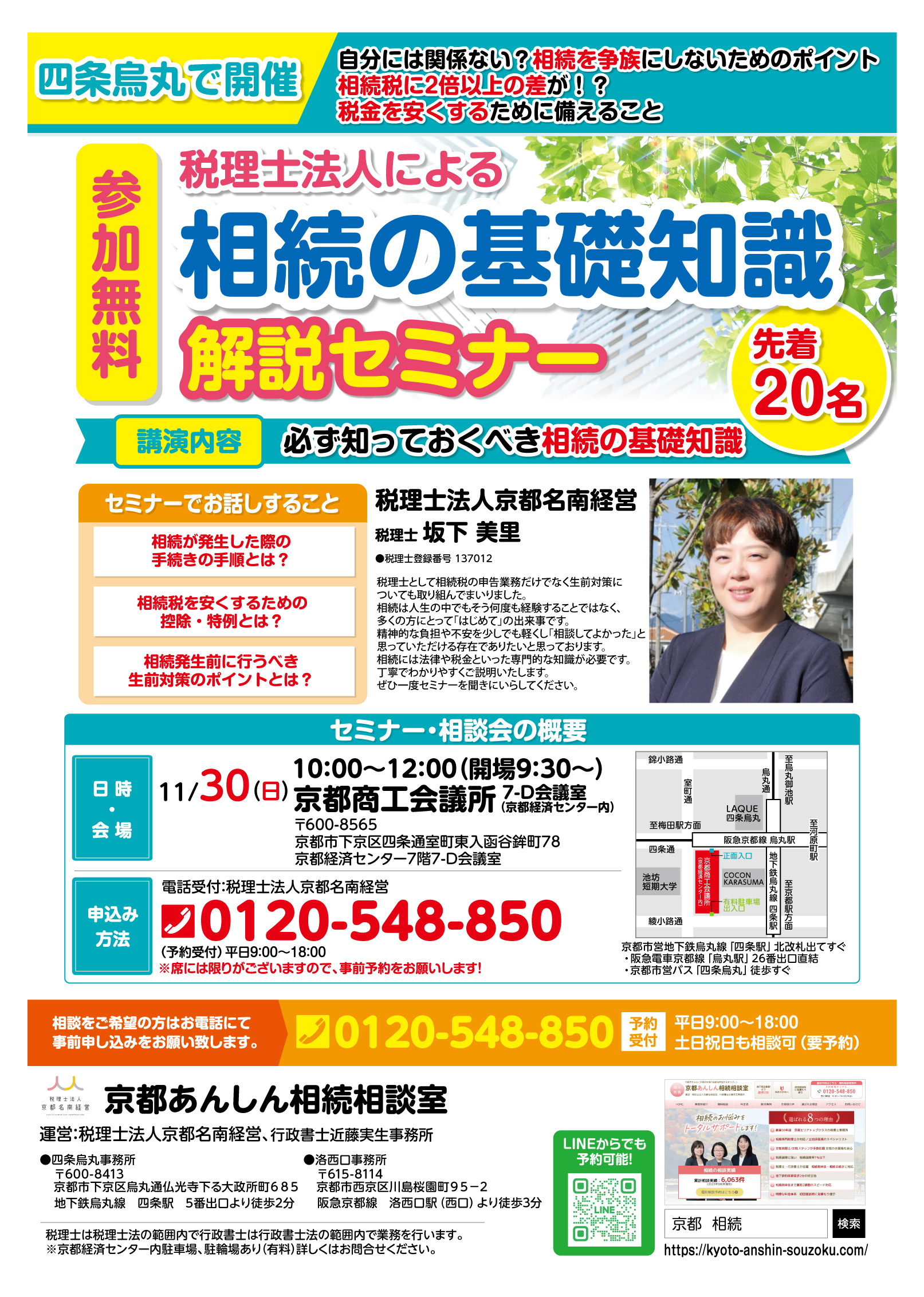 2025年11月30日(日)相続の基礎知識解説セミナー@京都商工会議所